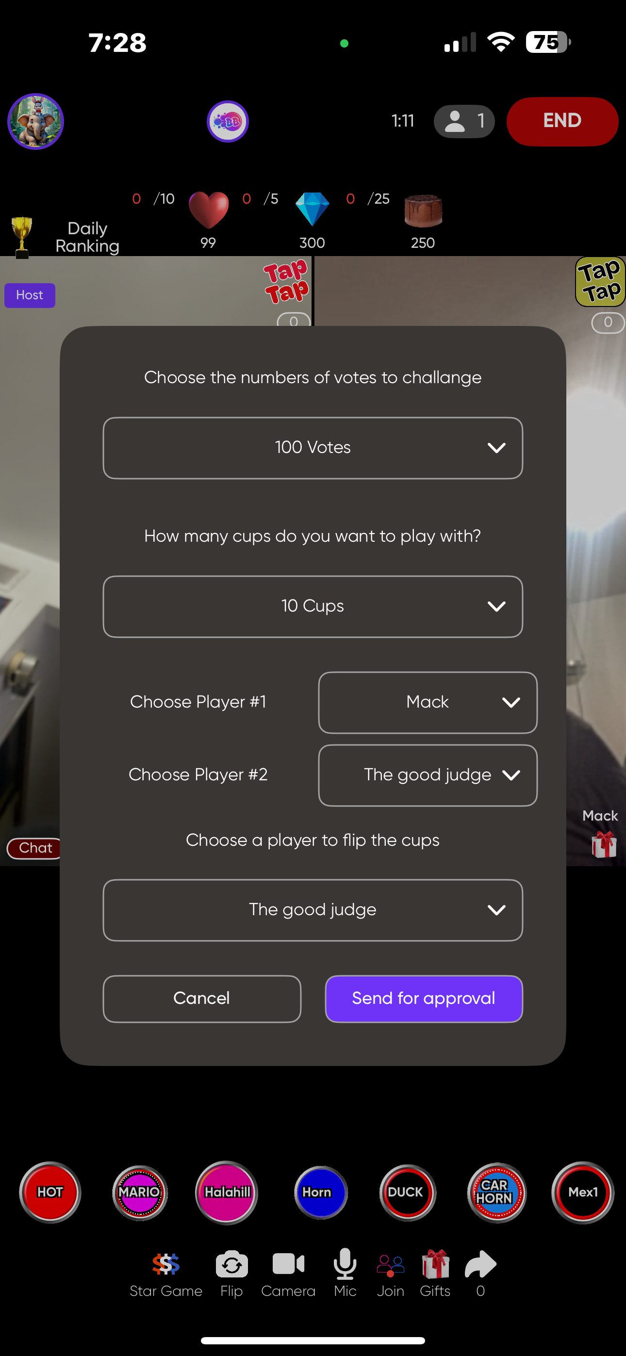points you want to challage/bet for this battle.
